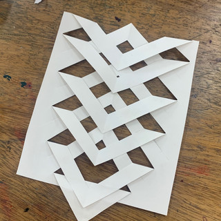 We spent the first half of the lesson exploring and sampling techniques that we could use to manipulate the paper. I looked at things like scrunchring, rolling, pleating (box and knife pleats), ruffling, ruching, cutting, origami folding techniques, etc. to create a wide rage of textures, shapes and forms.